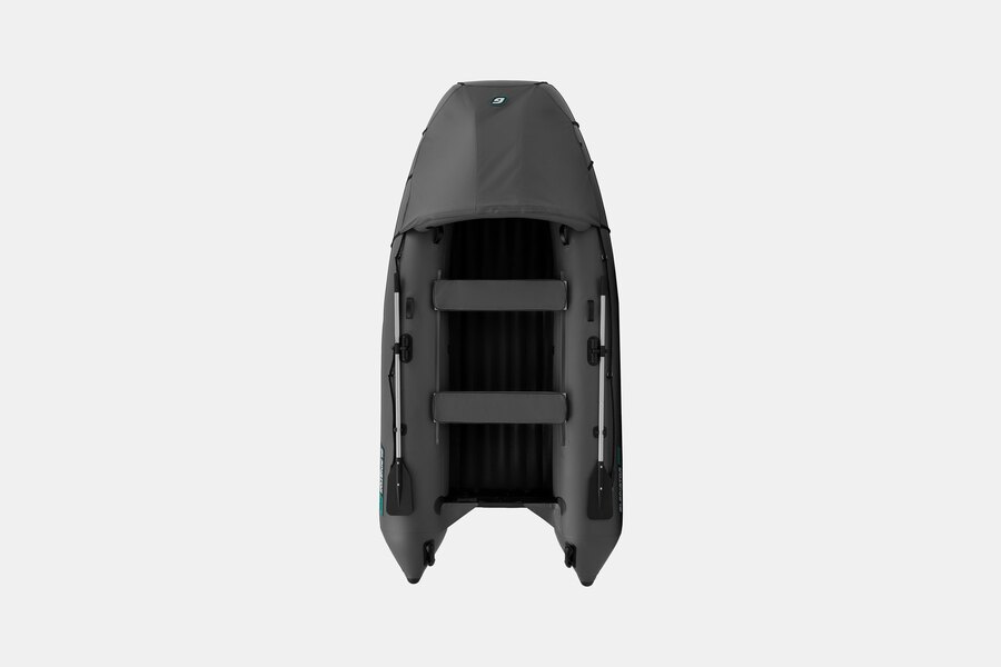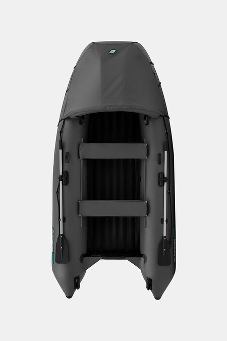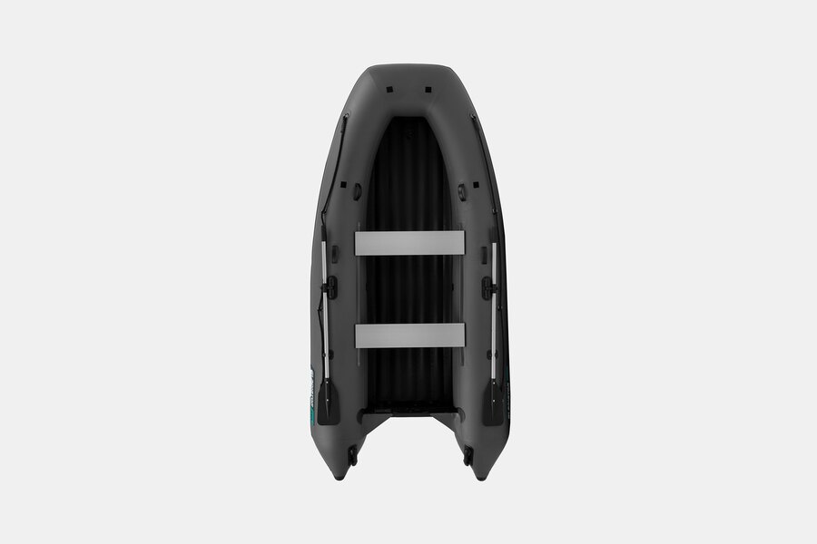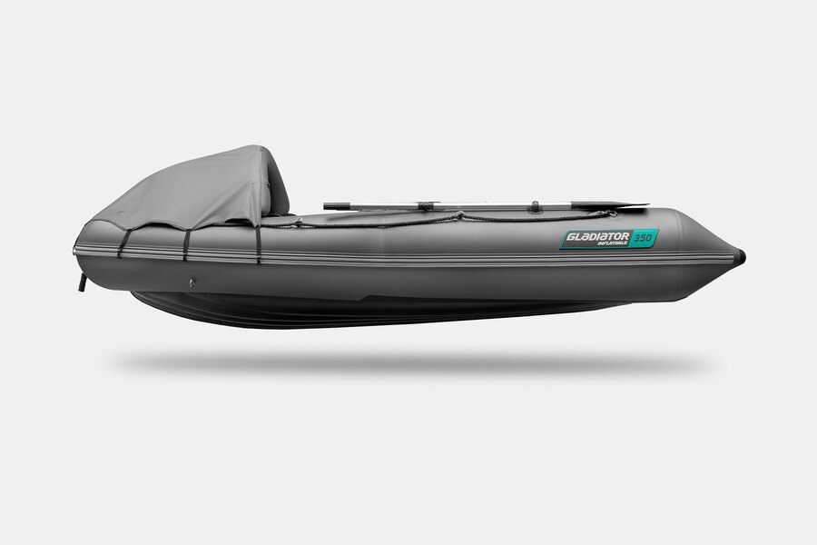 Трехместная килевая моторная лодка GLADIATOR E350PRO темносерого цвета со стационарным транцем под мотор до 15 л.с.