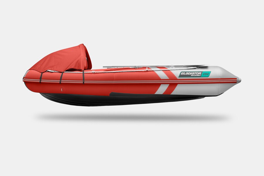 Трехместная килевая моторная лодка GLADIATOR E350PRO красно-белого цвета со стационарным транцем под мотор до 15 л.с.