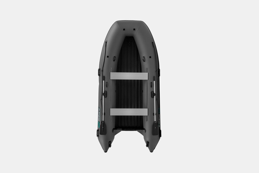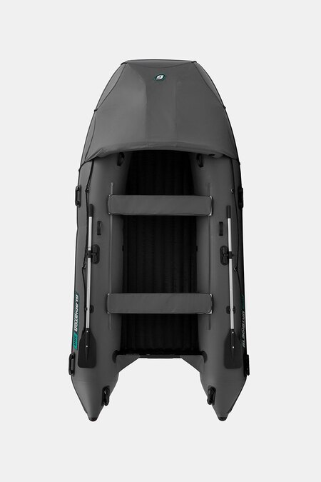 Четырехместная килевая моторная лодка GLADIATOR E380PRO темносерого цвета со стационарным транцем под мотор до 30 л.с.