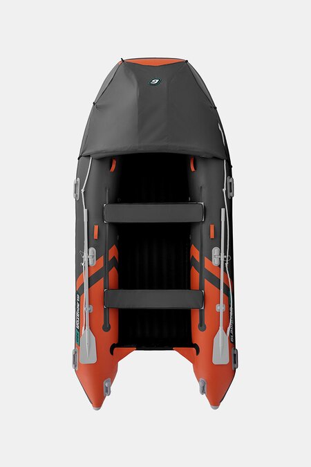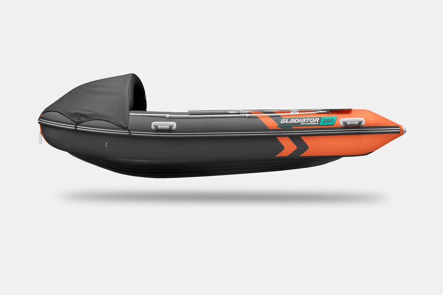 Четырехместная килевая моторная лодка GLADIATOR E380PRO оранжево-темносерого цвета со стационарным транцем под мотор до 30 л.с.