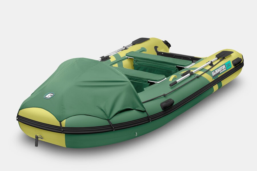 Используемый для лодок GLADIATOR материал состоит из пятислойного армированного ПВХ. Данный материал представляет собой синтетическую плетеную основу с полимерным покрытием, а использование композиционного поливинилхлорида и пластифицирующих добавок обеспечивает высокую прочность и устойчивость к порезам и проколам. Швы выполнены по уникальной технологии — каждый шов собран «внахлест», прошит и проклеен специальным клеем для ПВХ изделий. Каждый шов усилен проклейкой в четыре слоя из полос специальной ткани для придания швам эластичности, максимальной прочности и долговечности.