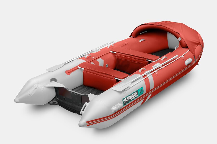 Используемый для лодок GLADIATOR материал состоит из пятислойного армированного ПВХ. Данный материал представляет собой синтетическую плетеную основу с полимерным покрытием, а использование композиционного поливинилхлорида и пластифицирующих добавок обеспечивает высокую прочность и устойчивость к порезам и проколам. Швы выполнены по уникальной технологии — каждый шов собран «внахлест», прошит и проклеен специальным клеем для ПВХ изделий. Каждый шов усилен проклейкой в четыре слоя из полос специальной ткани для придания швам эластичности, максимальной прочности и долговечности.