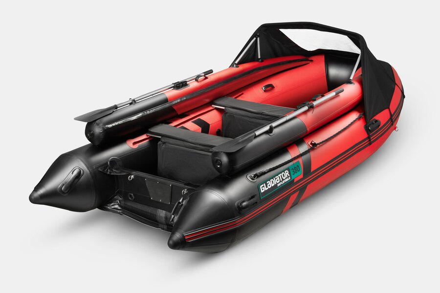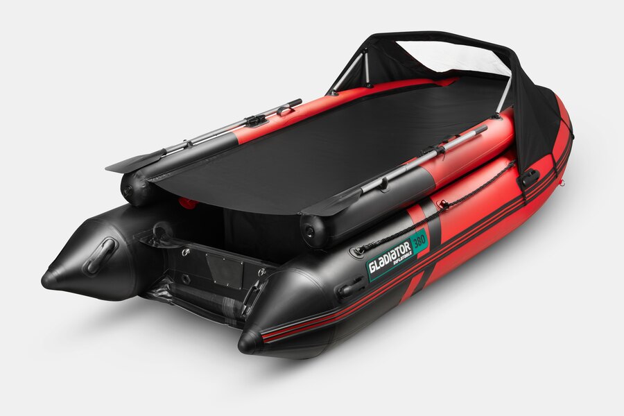 Используемый для лодок GLADIATOR материал состоит из пятислойного армированного ПВХ. Данный материал представляет собой синтетическую плетеную основу с полимерным покрытием, а использование композиционного поливинилхлорида и пластифицирующих добавок обеспечивает высокую прочность и устойчивость к порезам и проколам. Швы выполнены по уникальной технологии — каждый шов собран «внахлест», прошит и проклеен специальным клеем для ПВХ изделий. Каждый шов усилен проклейкой в четыре слоя из полос специальной ткани для придания швам эластичности, максимальной прочности и долговечности.