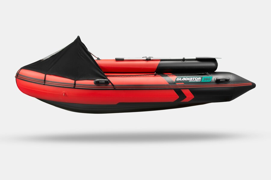 Четырехместная килевая моторная лодка GLADIATOR E380PROX красно-черная со стационарным транцем под мотор до 30 л.с.