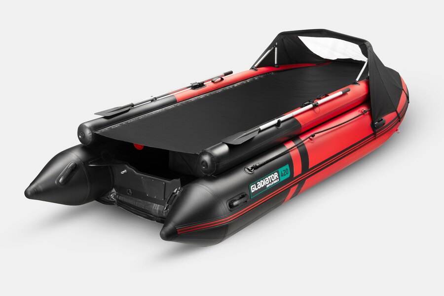 Используемый для лодок GLADIATOR материал состоит из пятислойного армированного ПВХ. Данный материал представляет собой синтетическую плетеную основу с полимерным покрытием, а использование композиционного поливинилхлорида и пластифицирующих добавок обеспечивает высокую прочность и устойчивость к порезам и проколам. Швы выполнены по уникальной технологии — каждый шов собран «внахлест», прошит и проклеен специальным клеем для ПВХ изделий. Каждый шов усилен проклейкой в четыре слоя из полос специальной ткани для придания швам эластичности, максимальной прочности и долговечности.
