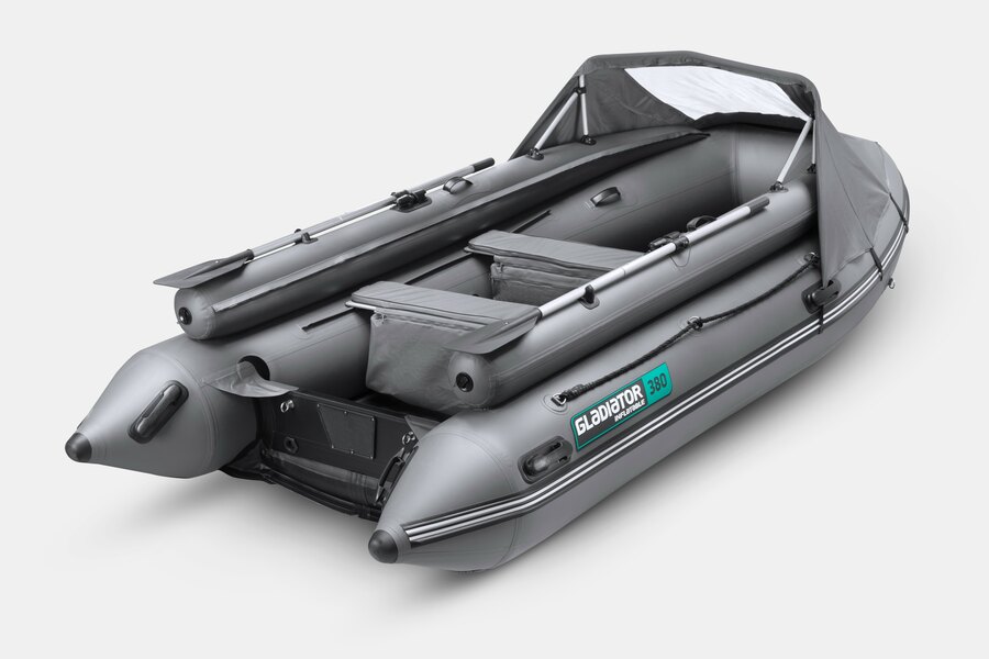 Используемый для лодок GLADIATOR материал состоит из пятислойного армированного ПВХ. Данный материал представляет собой синтетическую плетеную основу с полимерным покрытием, а использование композиционного поливинилхлорида и пластифицирующих добавок обеспечивает высокую прочность и устойчивость к порезам и проколам. Швы выполнены по уникальной технологии — каждый шов собран «внахлест», прошит и проклеен специальным клеем для ПВХ изделий. Каждый шов усилен проклейкой в четыре слоя из полос специальной ткани для придания швам эластичности, максимальной прочности и долговечности.