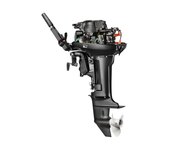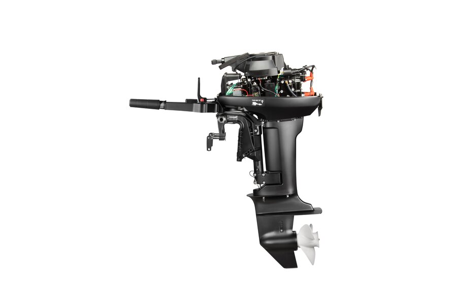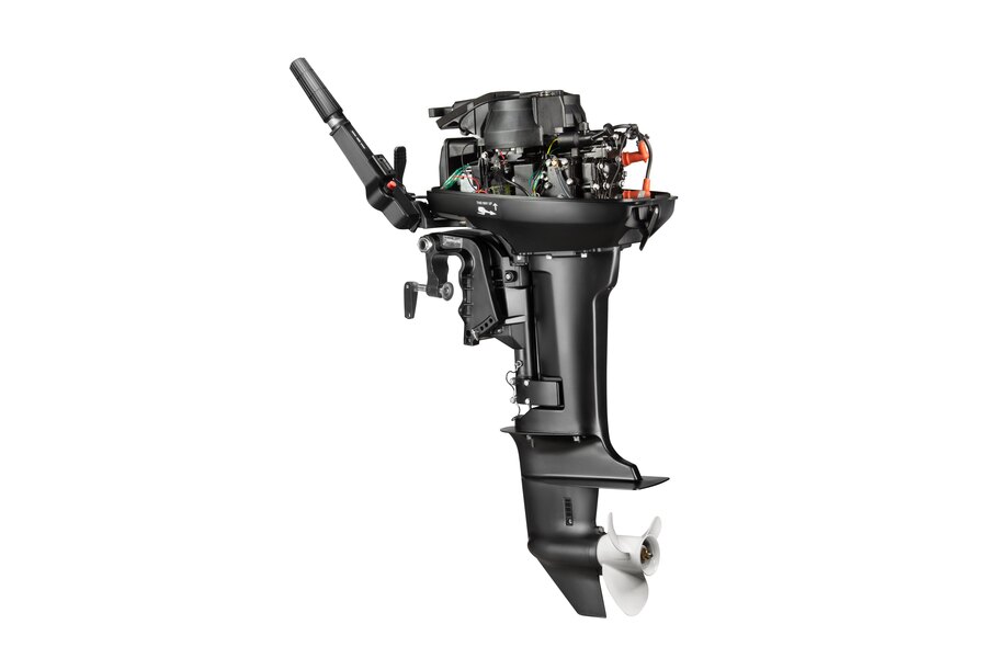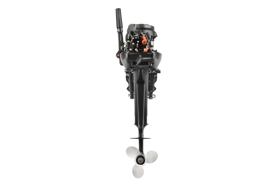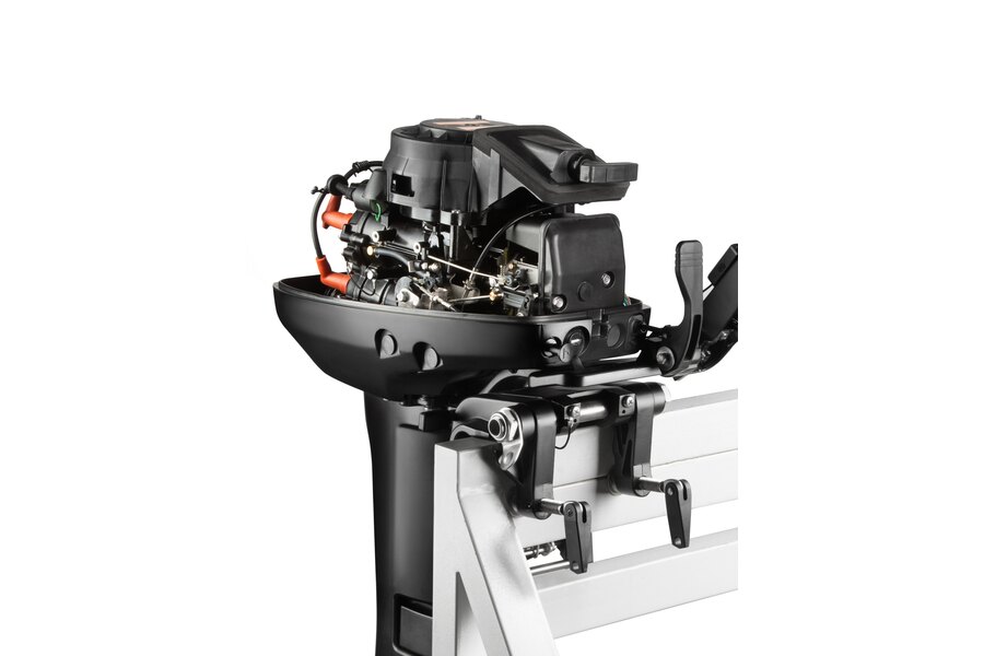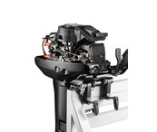 Мотор запускается ручным стартером и управляется стандартным румпелем с поворотной ручкой газа (гашеткой мотоциклетного типа) с антипроскальзывающими насечками.