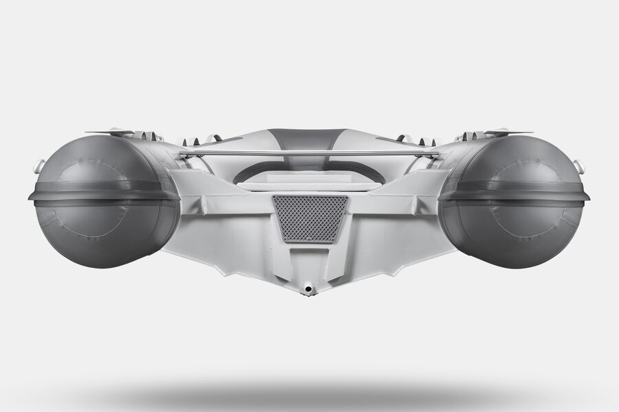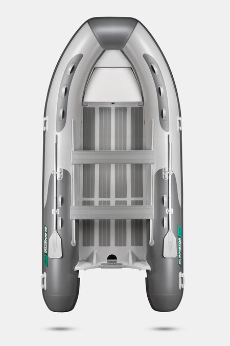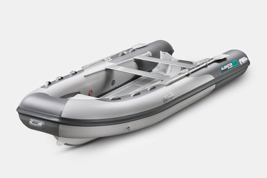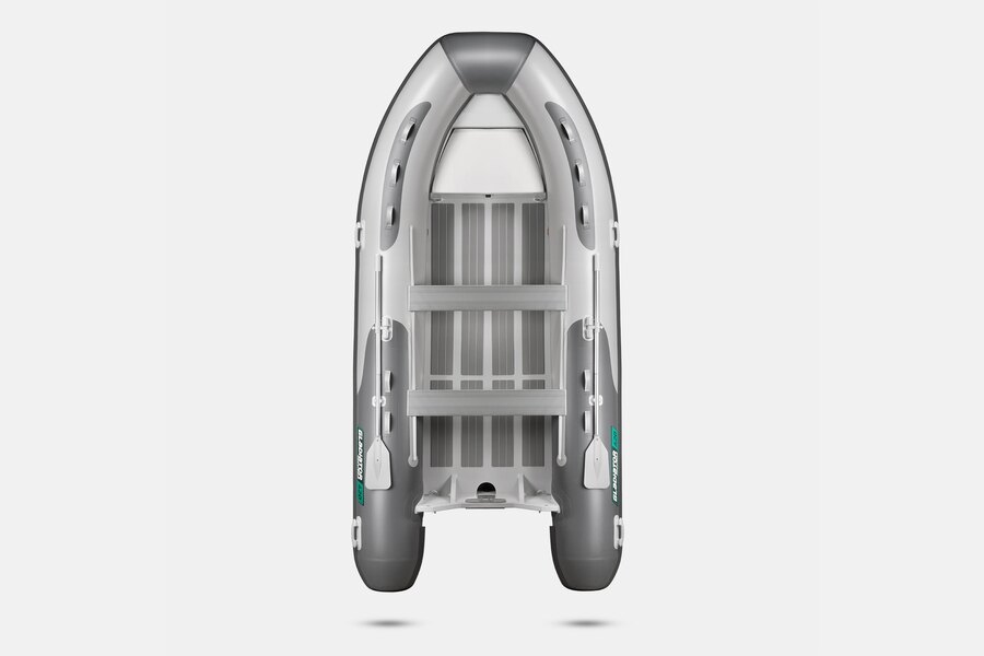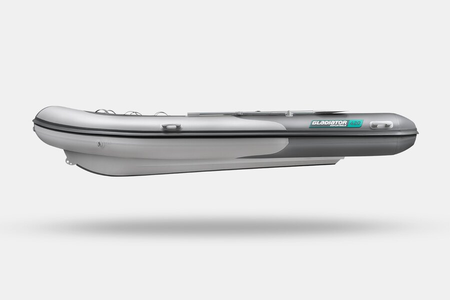 Семиместная килевая моторная лодка GLADIATOR RIB420B AL светло-темносерого цвета со стационарным транцем под мотор до 40 л.с.