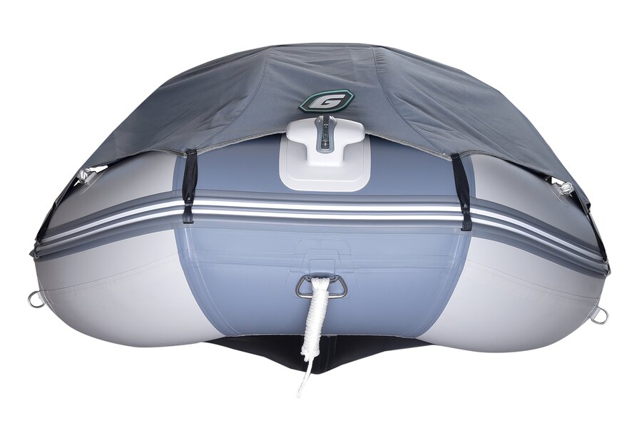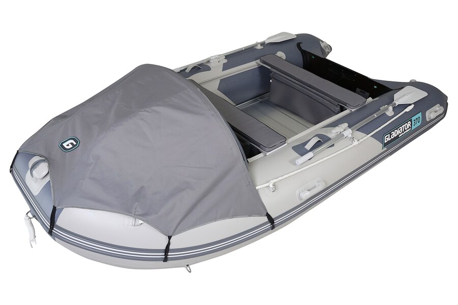 Пятиместная килевая моторная лодка GLADIATOR D370AL светло/темно-серого цвета со стационарным транцем под мотор до 30 л.с.