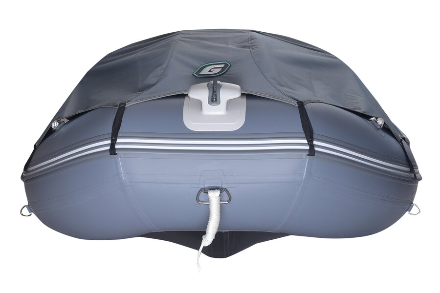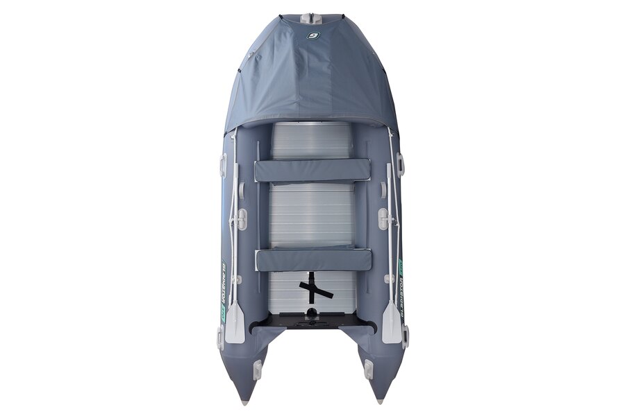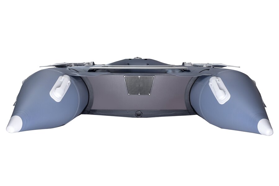 Пятиместная килевая моторная лодка GLADIATOR D370AL темно-серого цвета со стационарным транцем под мотор до 30 л.с.