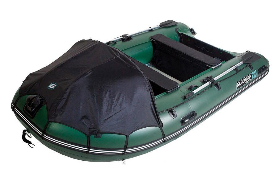 Пятиместная килевая моторная лодка GLADIATOR D370AL зеленого цвета со стационарным транцем под мотор до 30 л.с.