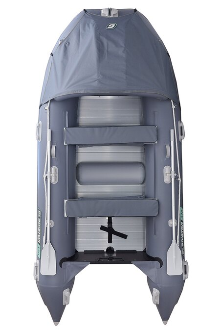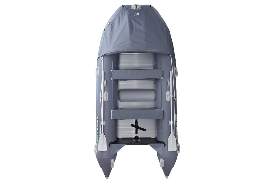 Десятиместная килевая моторная лодка GLADIATOR D500AL темно-серого цвета со стационарным транцем под мотор до 50 л.с.
