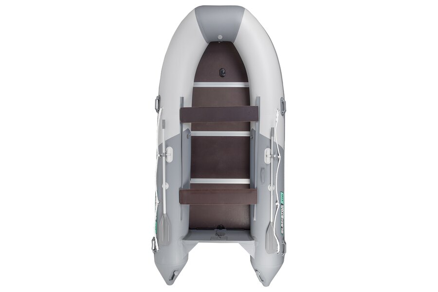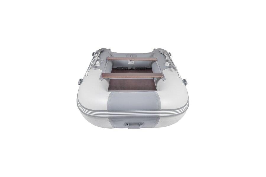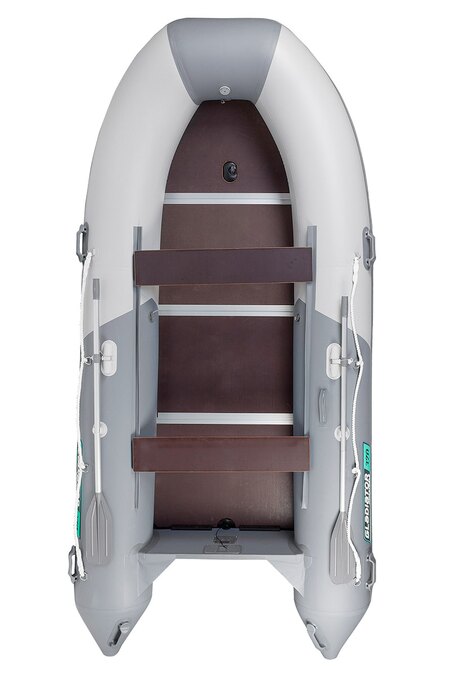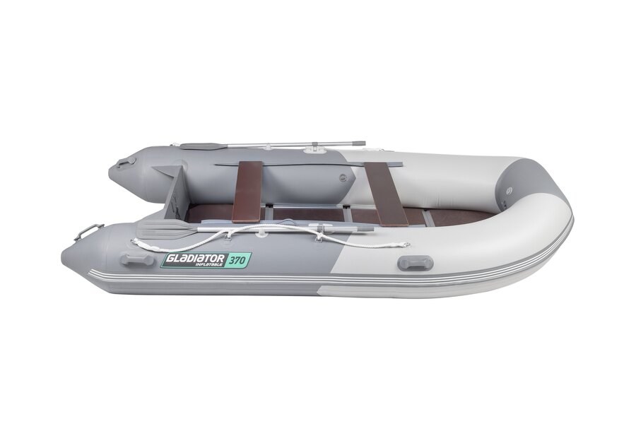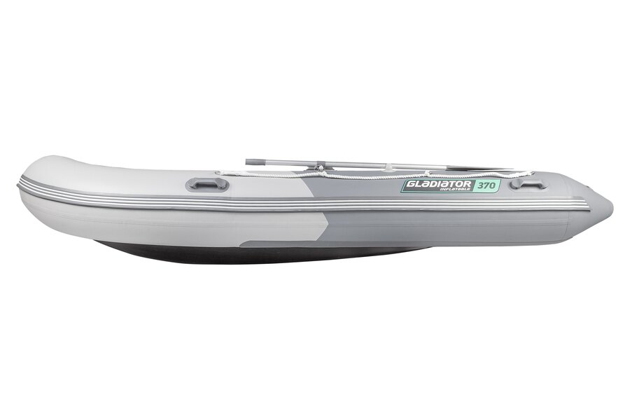 Пятиместная килевая моторная лодка GLADIATOR B370 светло/темно-серого цвета со стационарным транцем под мотор до 30 л.с.