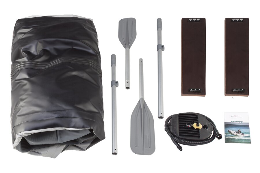 Используемый для лодок GLADIATOR материал состоит из пятислойного армированного ПВХ. Данный материал представляет собой синтетическую плетеную основу с полимерным покрытием, а использование композиционного поливинилхлорида и пластифицирующих добавок обеспечивает высокую прочность и устойчивость к порезам и проколам. Швы выполнены по уникальной технологии — каждый шов собран «внахлест», прошит и проклеен специальным клеем для ПВХ изделий. Каждый шов усилен проклейкой в четыре слоя из полос специальной ткани для придания швам эластичности, максимальной прочности и долговечности.
