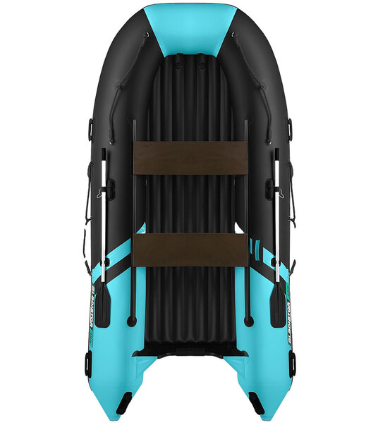 надувное дно низкого давления, плотность ПВХ баллоны 1100 г./м2, дно — 1350 г./м2, производство Китай, доп.комплектация: мягкие накладки на сидения с подсумками, носовой тент