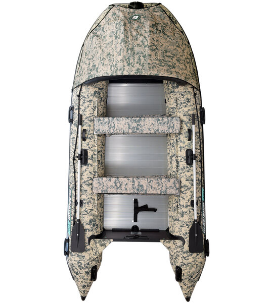 алюминиевое дно, плотность ПВХ баллоны и дно — 1100 г/м2, производство Китай, доп.комплектация: мягкие накладки на сидения с подсумками, носовой тент, носовая сумка